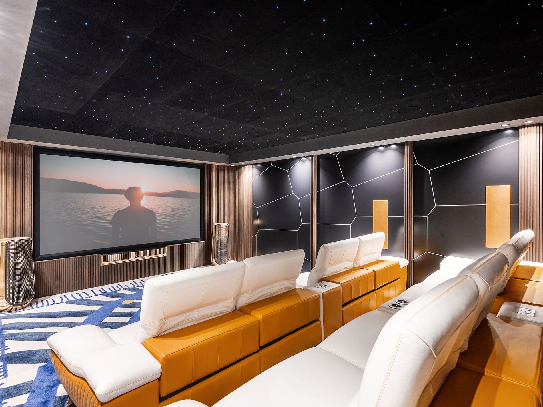 Automated soft furnishings and exterior privacy screens ensure comfort and climate control throughout. The residence features five spacious bedrooms, five bathrooms, and two powder rooms, complemented by a Bang & Olufsen cinema, Technogym fitness suite, and oak herringbone flooring.