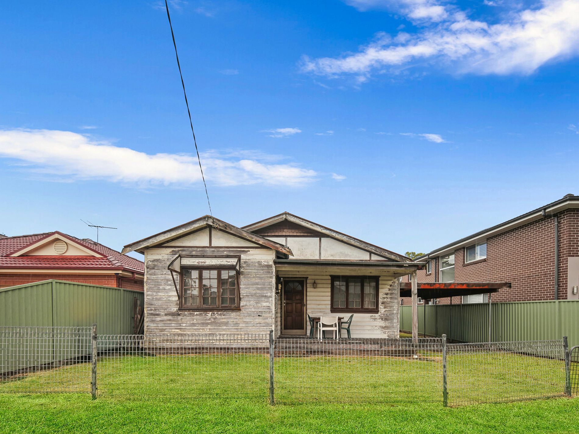 • Front porch, fenced from the street with a single side carport